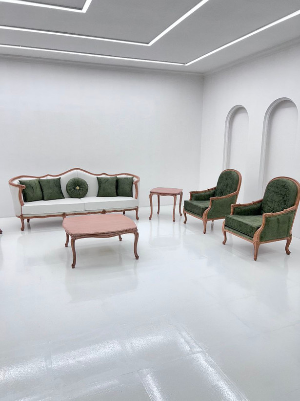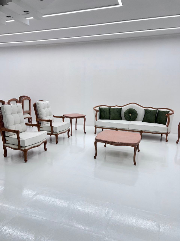 | * ترکیب خاص نشیمن: یک کاناپه ۳ نفره و چهار مبل تک نفره (توزیع بهتر نشیمن). | * ظرفیت: ۸ نفره |