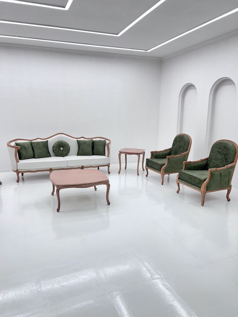 | * ترکیب خاص نشیمن: یک کاناپه ۳ نفره و چهار مبل تک نفره (توزیع بهتر نشیمن). | * ظرفیت: ۸ نفره |